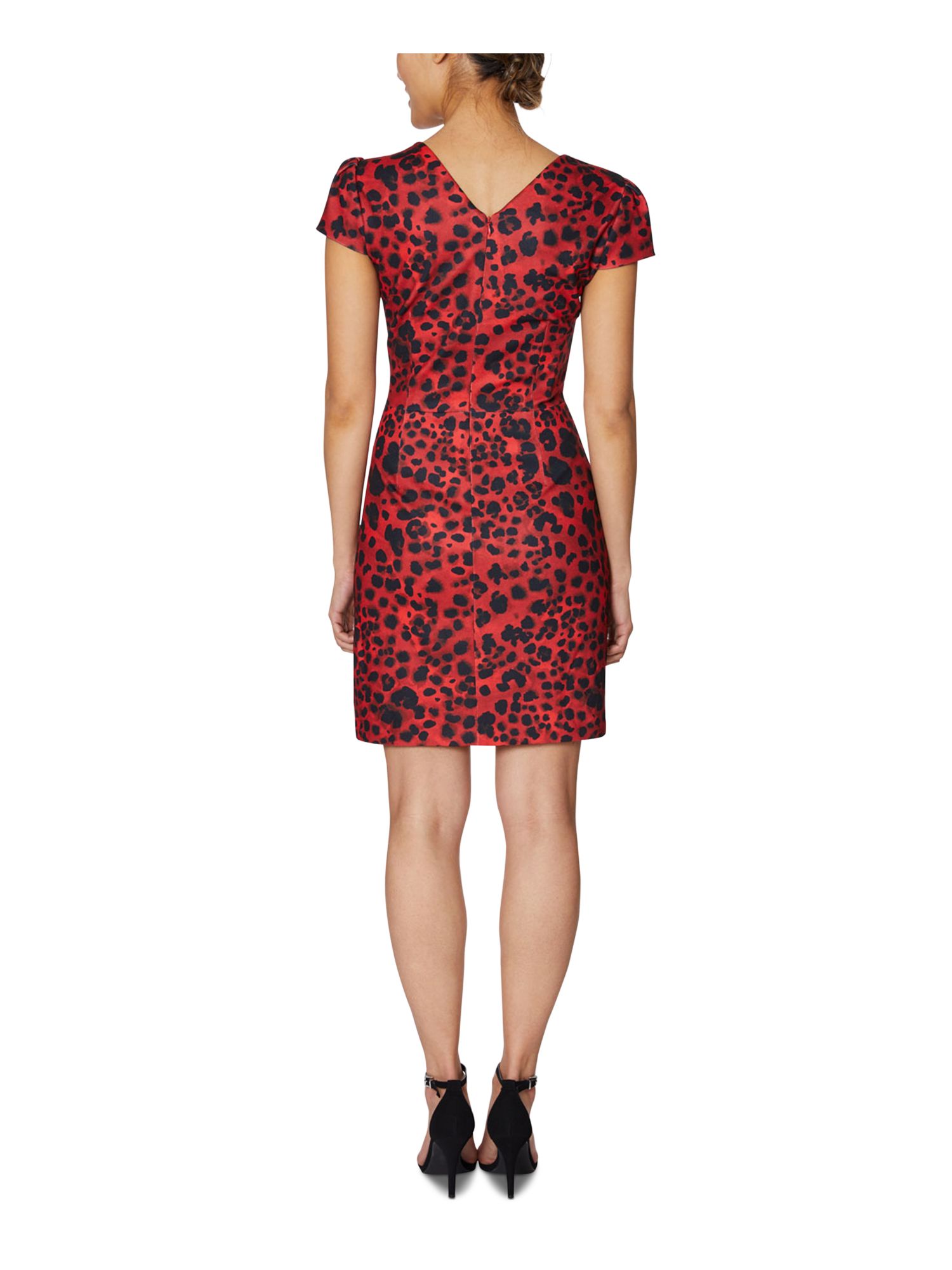 Betsey Johnson Betsey Johnson Womens Red Animal Print Short Sleeve Jewel Neck Above The Knee Body Con Evening Dress Size 4p